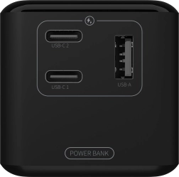 Twee USB‑C en één USB‑A maken gelijktijdig opladen van meerdere apparaten mogelijk – ideaal voor werk, onderweg en dagelijks in je rugzak.