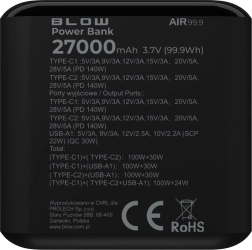 Deze universele powerbank met 27.000 mAh levert tot 140 W, waardoor niet alleen smartphones maar ook zwaardere apparaten, waaronder sommige laptops, snel worden opgeladen. Dankzij de standaarden PD, QC 3.0 en SCP verkort je de laadtijd tot een minimum en heb je overal en altijd energie bij de hand.