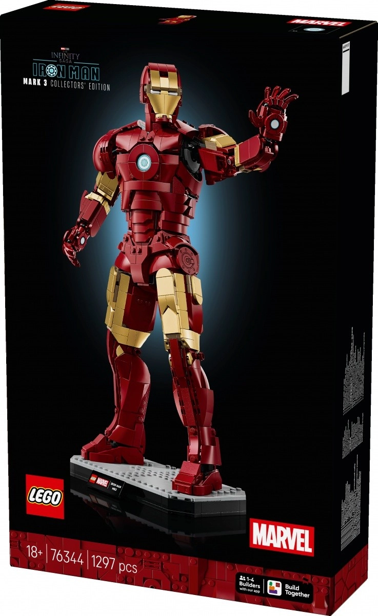 Dankzij gewrichten op sleutelposities kan de figuur in dynamische poses worden gezet – van een heroïsche houding tot een actievolle vooroverbuiging. De set wordt aangevuld met een minifiguur van Iron Man Mark 3 en de mogelijkheid om de LEGO Builder-app te gebruiken voor duidelijke stapsgewijze begeleiding.