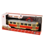 Rood-witte tram die haltes in het Tsjechisch omroept, zodat alle passagiers weten wanneer ze moeten uitstappen. De tram roept 7 haltes om: Hoofdstation, Aquapark, Dierentuin, Sportstadion, Basis- en Kleuterschool, Theater, Winkelcentrum. De deuren worden handmatig geopend en als leuke, geslaagde extra licht het interieur blauw op zodra ze open zijn. Elke keer dat de deuren opengaan, klinkt een omroep en bij het sluiten knipperen zelfs de koplampen. Ruime tram van kunststof met freewheel-aandrijving. Instappen maar, de rit vol plezier begint!