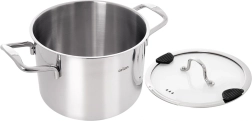 Compacte roestvrijstalen pan met een inhoud van 2,3 l en een diameter van 16 cm, ideaal voor dagelijks koken. Heeft een duurzame constructie van roestvrij staal 304, een glazen deksel met ontluchting en schenktuit en een meerlagige bodem met aluminium kern voor gelijkmatige verhitting. Geschikt voor gas, elektrisch, keramisch en inductie, voor in de oven tot 200 °C en vaatwasmachinebestendig.
