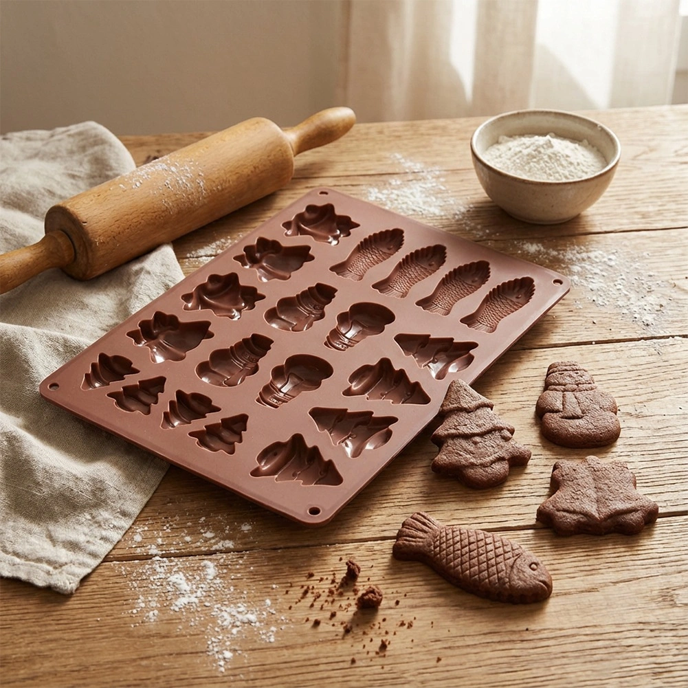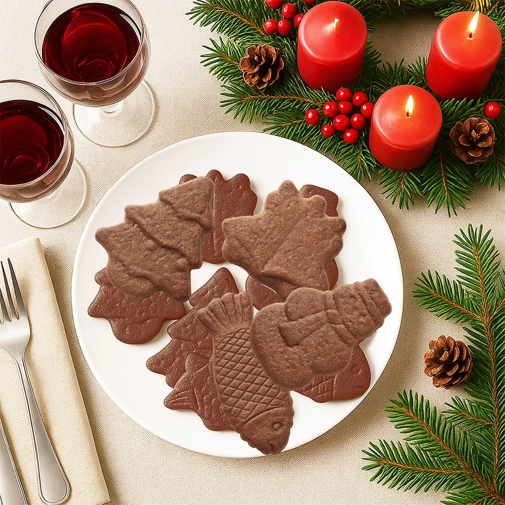 Bereid in één keer tot 20 stuks in de motieven boompje, sneeuwpop, bel en vis – ideaal voor feestelijke traktaties.