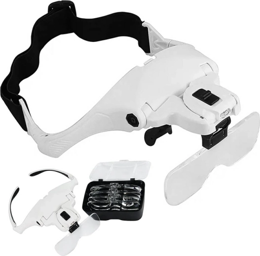 Deze lichte en comfortabele loep maakt al het detailwerk eenvoudiger. Dankzij 5 vergrotingsniveaus (1.0x, 1.5x, 2.0x, 2.5x, 3.5x) kies je moeiteloos het optimale zicht voor solderen, horlogereparaties, het lezen van kleine teksten of botanische observatie. Dubbele LED-verlichting met verstelbare kanteling verlicht het werkvlak gelijkmatig zonder storende schaduwen.