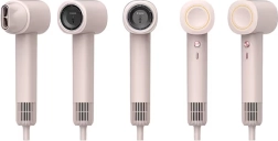 Praktische crème-kleurige 5-in-1 föhn met een krachtige BLDC-motor en ionisatie voor snel drogen en een gladde, glanzende look zonder pluis. Verwisselbare opzetstukken maken drogen, gladmaken, volume en golven mogelijk, terwijl luchtstroom- en temperatuurregeling en koude lucht zorgen voor een milde en precieze styling, elke dag.