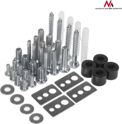 De installatie is eenvoudig – in de verpakking vindt u een complete set schroeven voor montage aan de muur en aan de tv, en een Nederlandse montagehandleiding. De vermelde schermdiagonaal is indicatief: u kunt ook een grotere tv gebruiken, zolang deze 30 kg niet overschrijdt en overeenkomt met de VESA-specificatie.