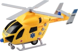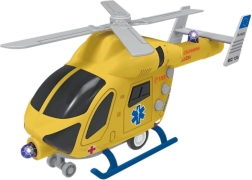 Dankzij de vliegwielaandrijving is spelen eenvoudig en dynamisch – geef een duwtje en de helikopter rijdt weg. De robuuste kunststof uitvoering, het compacte formaat van 20 cm en het werkende zwaailicht maken het een ideale speelgoedkeuze voor kleine hulpverleners.
