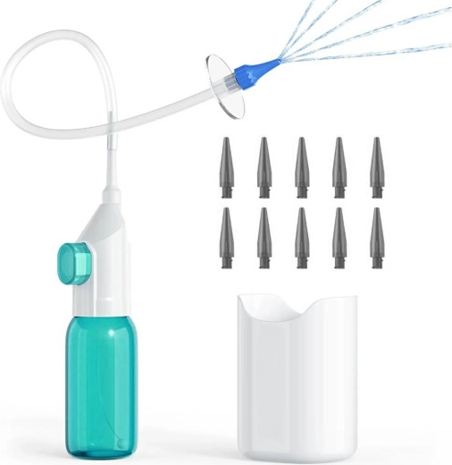 De set bevat alles wat u nodig hebt voor hygiënisch gebruik – wegwerp-opzetstukken voor verschillende gebruikers en een praktische bak voor het opvangen van gebruikt water. Dankzij de compacte afmetingen is de oorreiniger ideaal voor thuisgebruik en op reis.