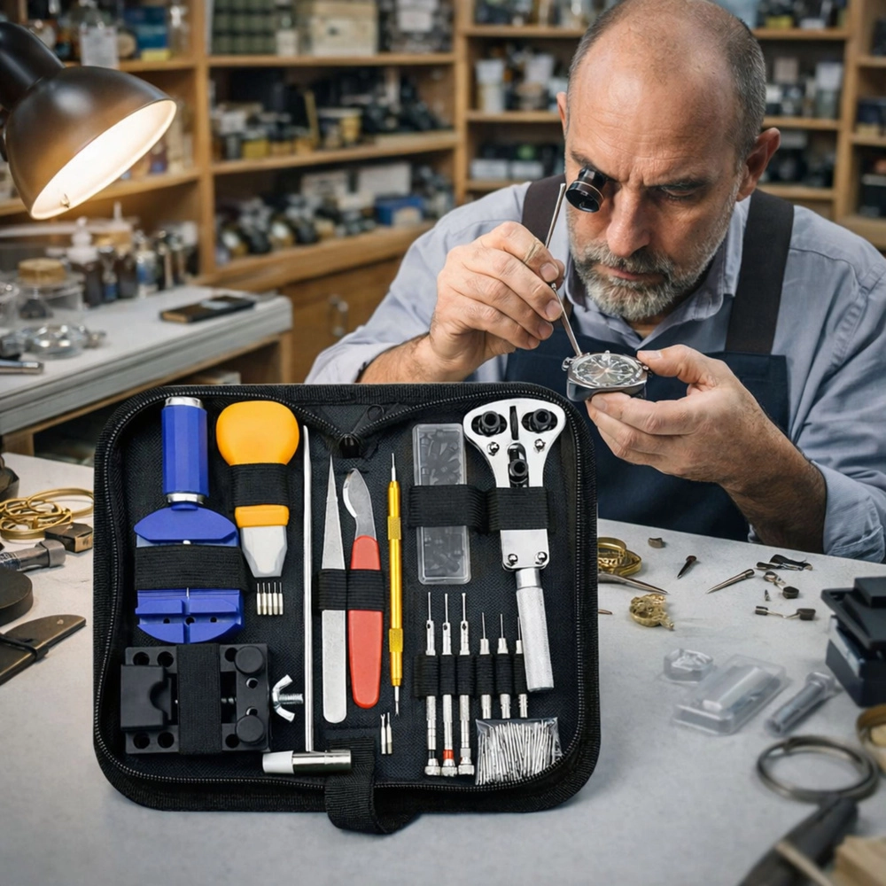 Professionele horlogereparatieset in beschermetui, 147 delig