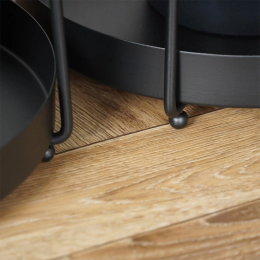 Ontdek een moderne manier om je kamerplanten te laten schitteren. De tweelaagse standaards in tijdloos zwart zorgen voor een esthetische presentatie, betere luchtcirculatie en eenvoudiger onderhoud van de omgeving. De combinatie van slanke lijnen en stevige metalen schalen met opstaande rand past perfect in loft-, moderne en Scandinavische interieurs.