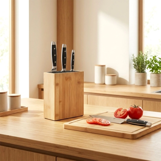Natuurlijk bamboe met een gladde afwerking vult de keuken prachtig aan en dankzij de mogelijkheid om viltpads te gebruiken staat het blok stevig op zijn plaats.