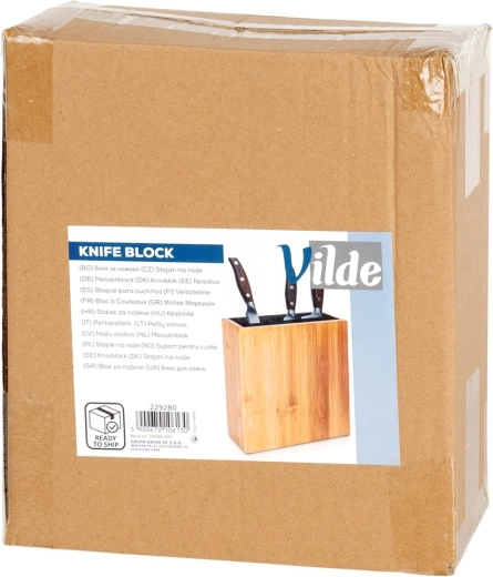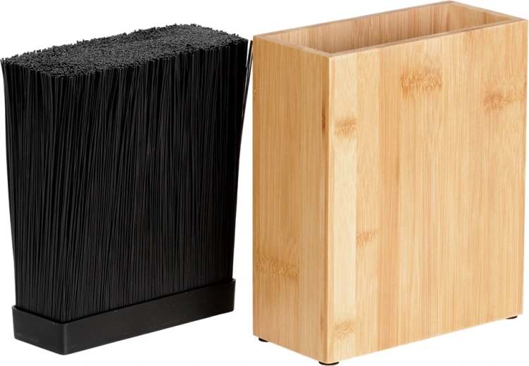 De uitneembare inzet maakt eenvoudig reinigen mogelijk en dankzij de compacte afmetingen is het blok ideaal voor op het aanrecht. Bamboe is een ecologisch en duurzaam materiaal dat natuurlijk harmonieert met andere houten accessoires.