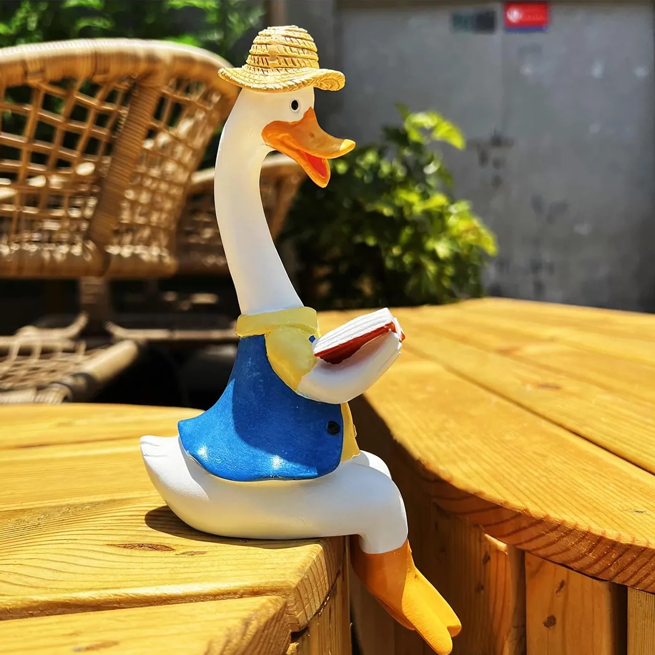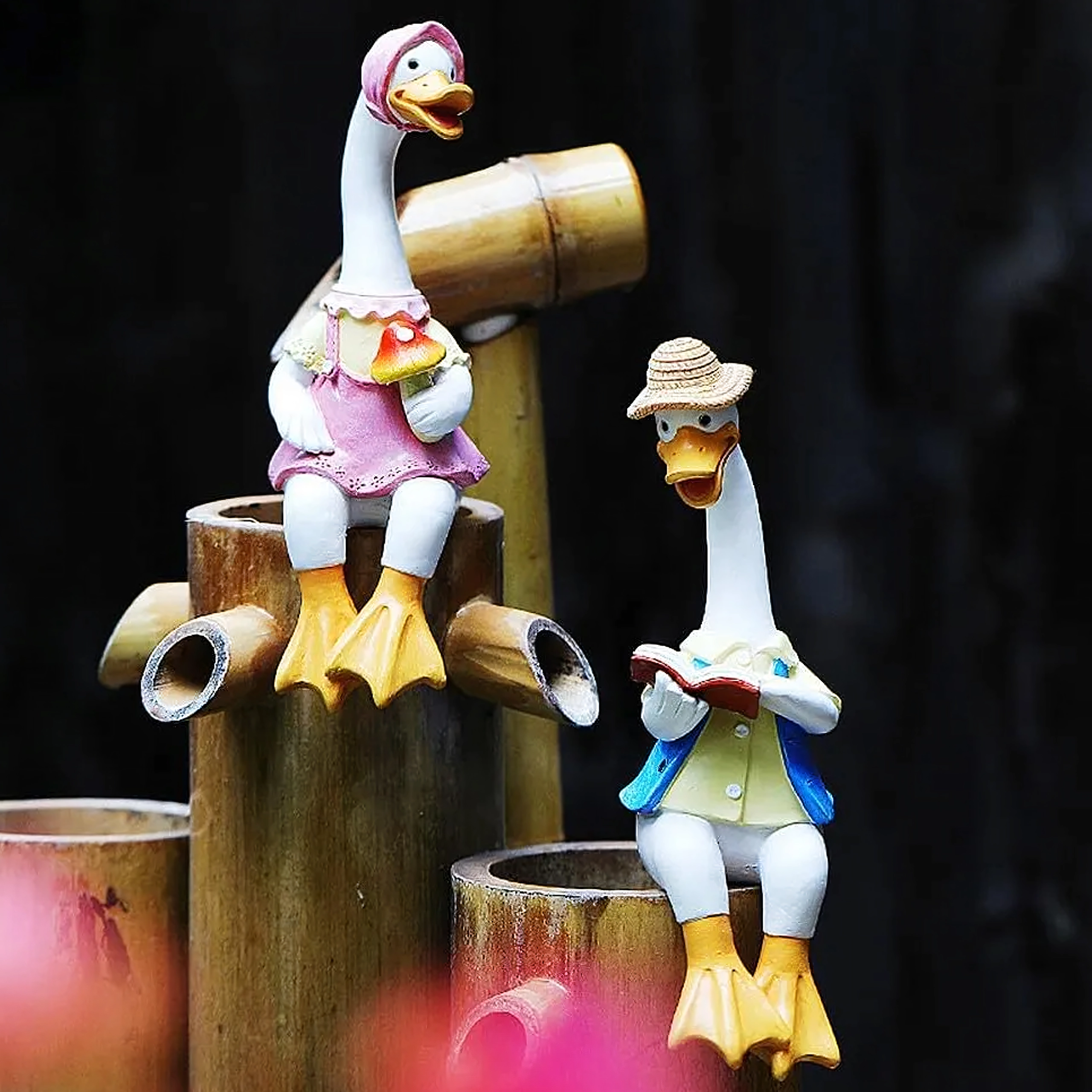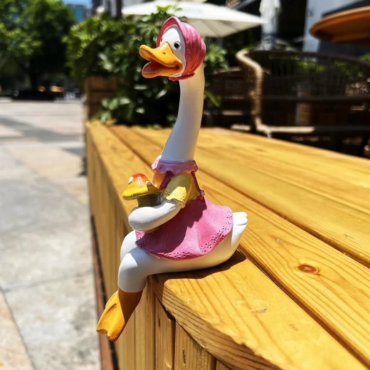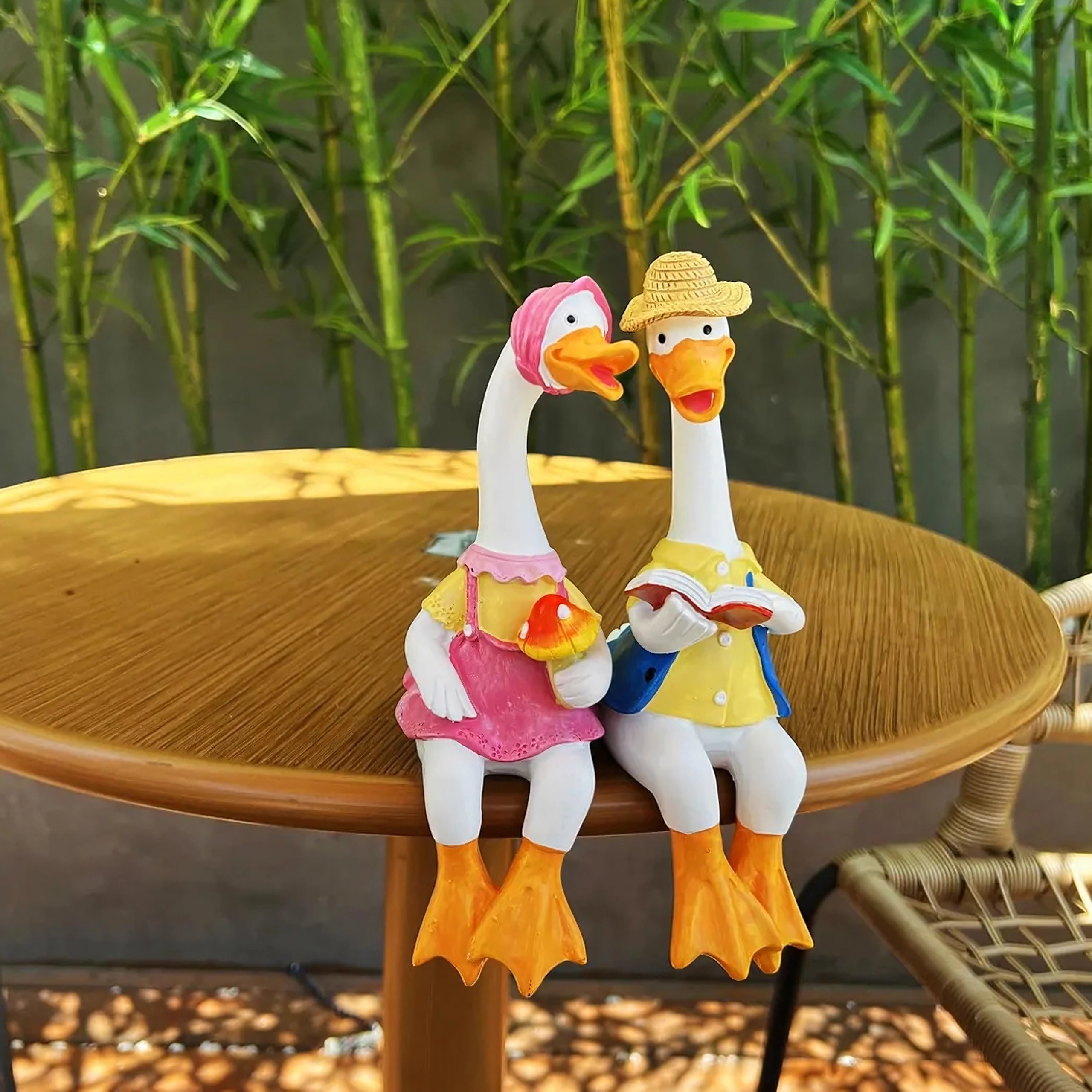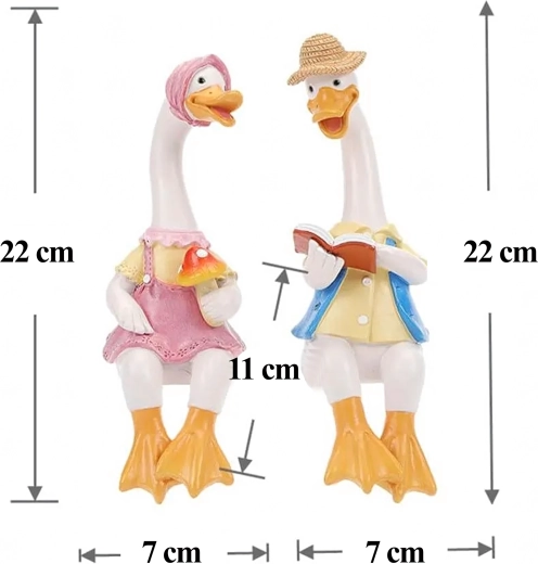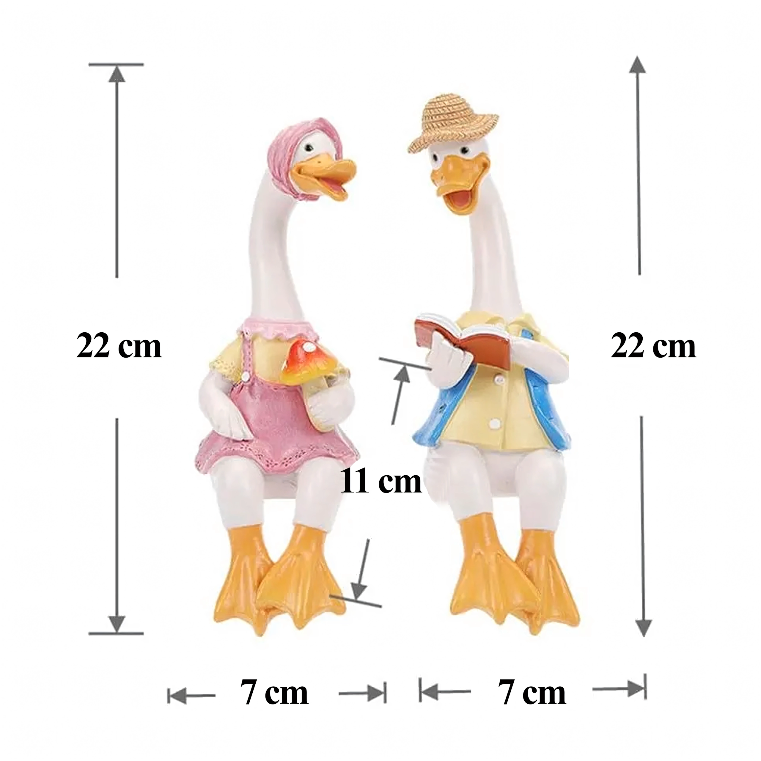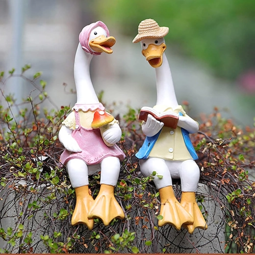 Een schattige set van twee decoratieve eendjes die je tuin, balkon én interieur prachtig versiert. De beeldjes zijn ontworpen om op de rand van een bloempot of plank te zitten, met verfijnde details, levendige kleuren en bungelende beentjes voor een speels effect. Ze geven elke ruimte een relaxte sfeer, zijn ideaal als cadeau en dankzij de duurzame afwerking geschikt voor decoratie binnen en buiten.