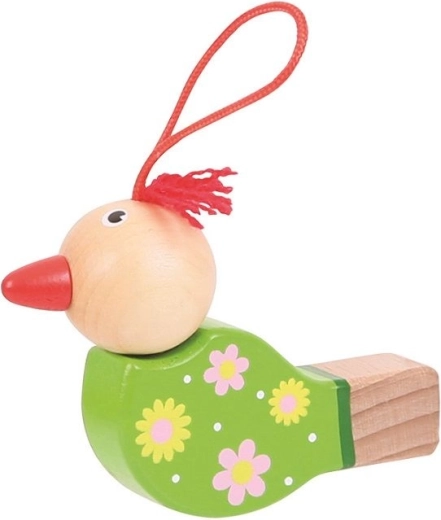 Houten kleurrijke fluitje Vogel in een vrolijk geel ontwerp brengt vreugde en plezier aan elk kind. Blaas en laat de vogel een vrolijk deuntje fluiten.