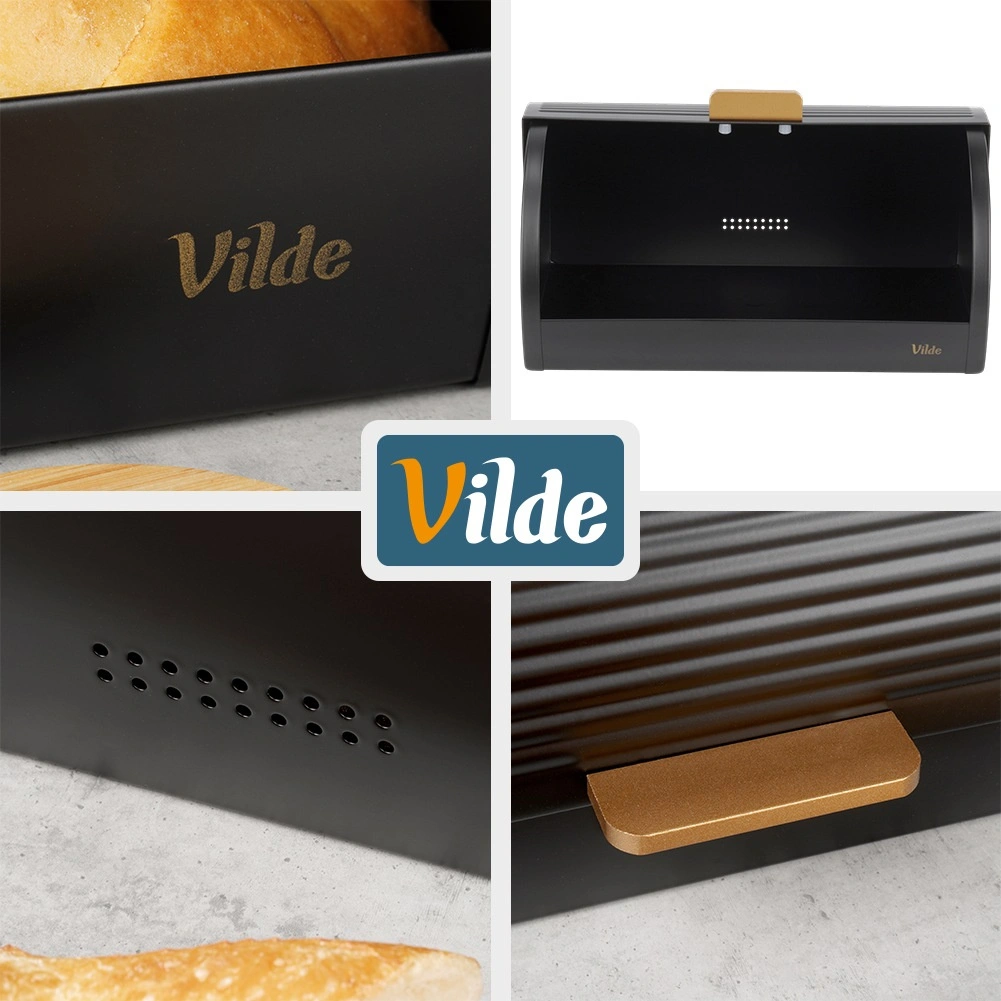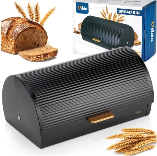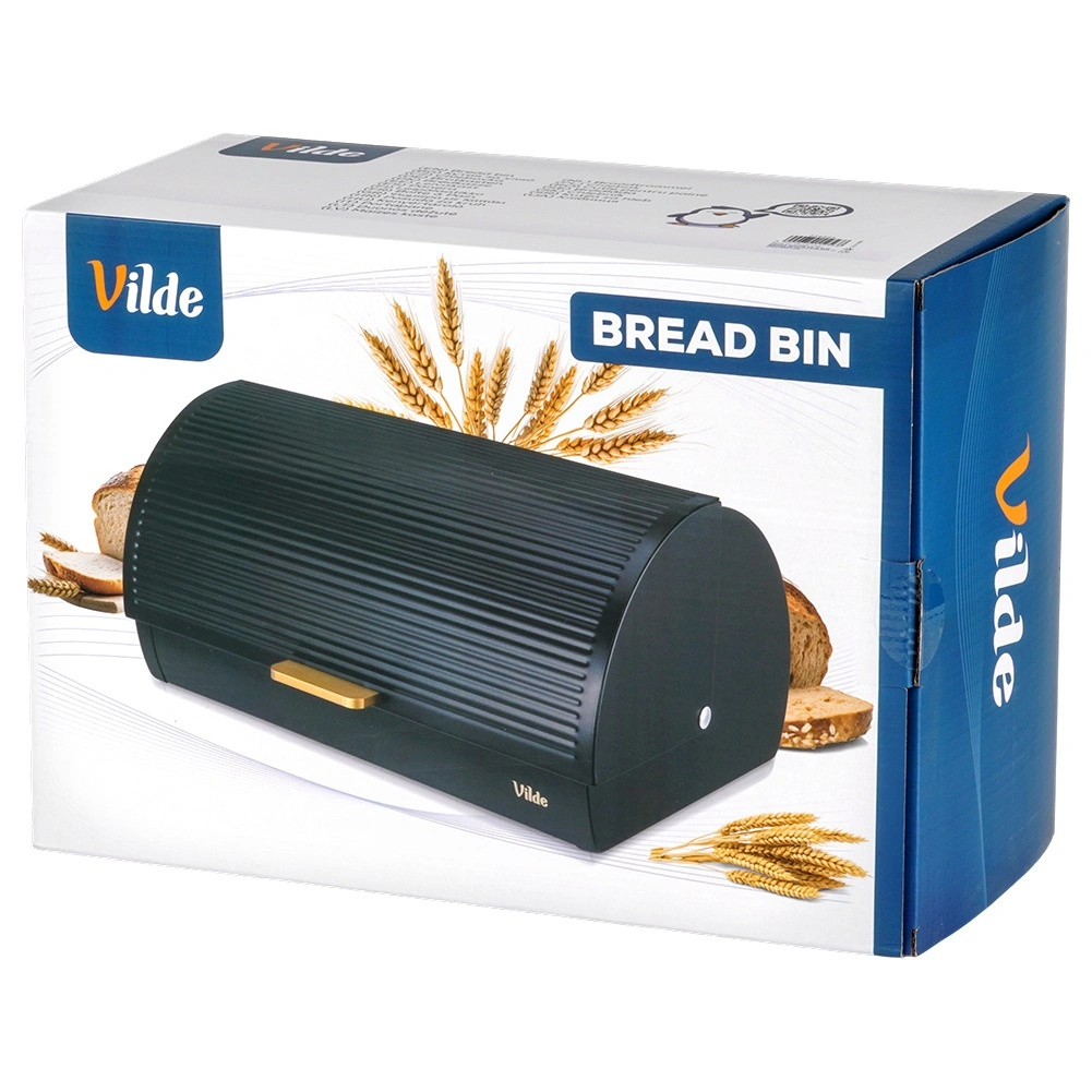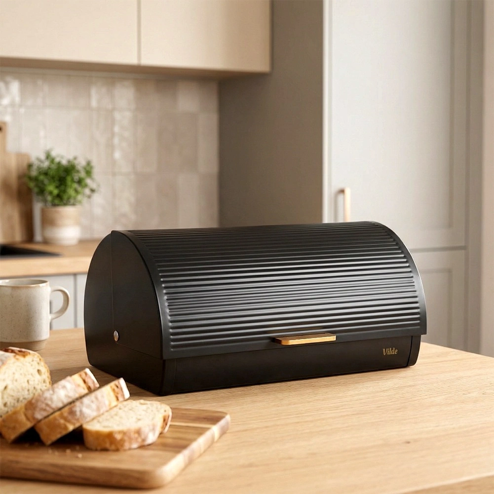 Praktische en ruime broodtrommel met afmetingen 39 × 28 × 18,5 cm biedt een veilige plek voor brood, broodjes en zoet gebak. De stevige metalen constructie met poedercoating in matzwart is bestand tegen beschadiging en helpt de ideale bewaaromstandigheden te behouden.