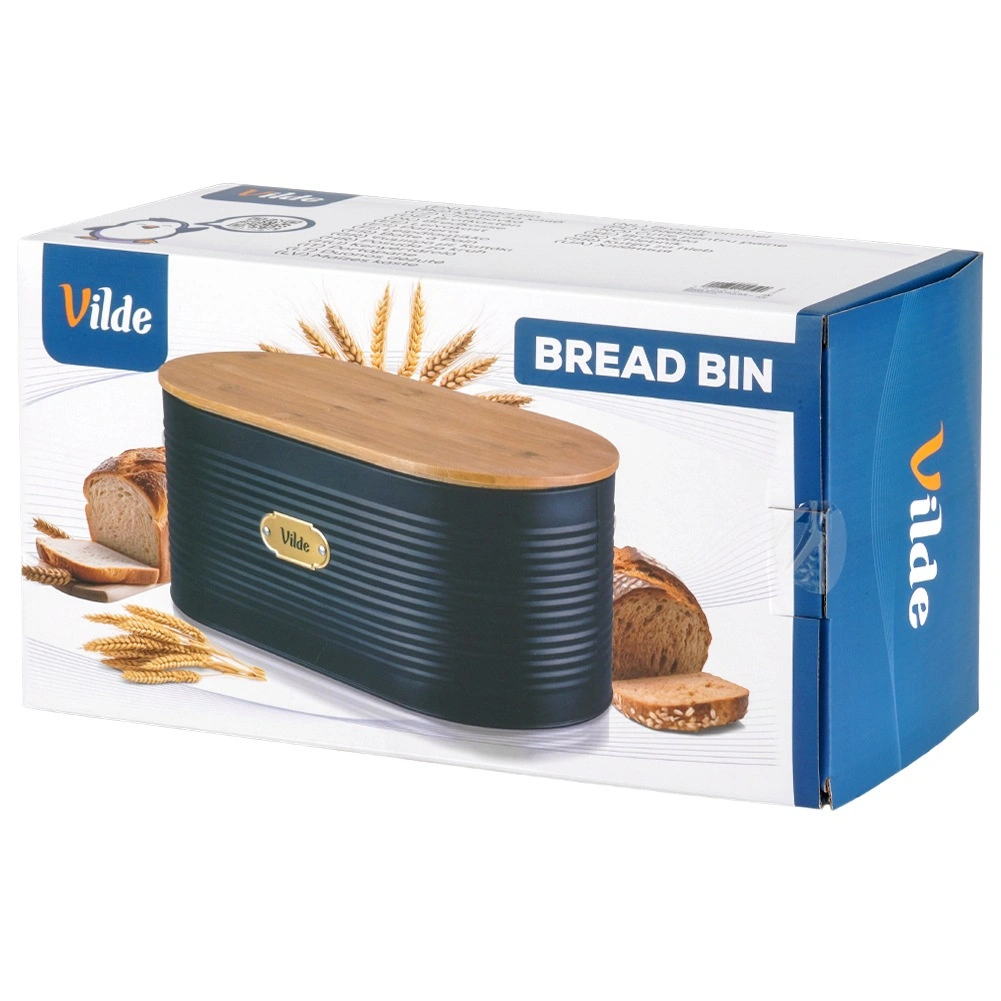 De design broodtrommel combineert duurzaam gelakt metaal met natuurlijk bamboe voor langdurige versheid van bakwaren en orde op het aanrecht. Dankzij de ovale vorm en de afmetingen 34 × 18,5 × 15 cm biedt hij voldoende ruimte voor brood, broodjes en ander gebak.