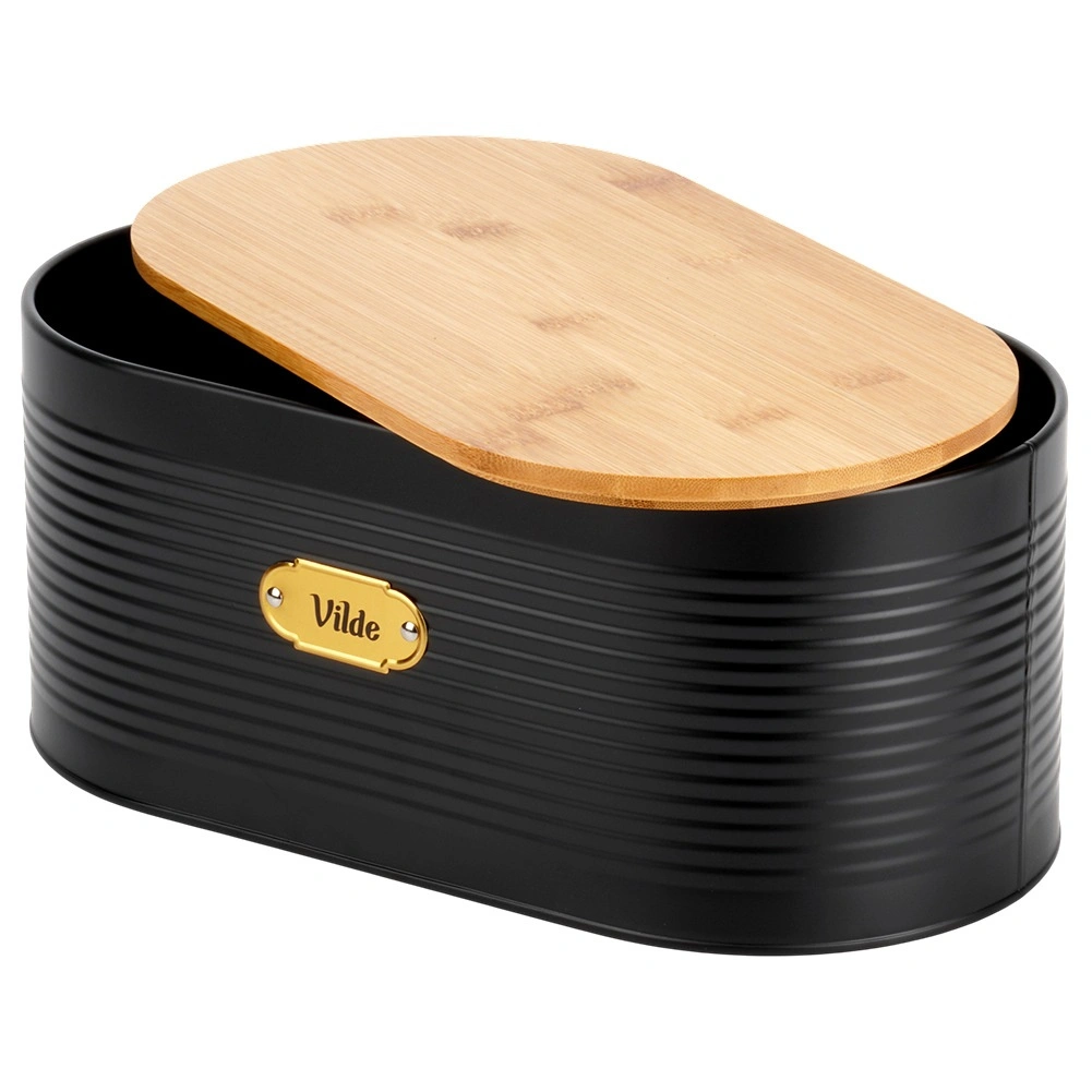 De matzwarte kleur met elegante ribbelstructuur past perfect bij zowel moderne als klassieke interieurs. Het houten deksel fungeert tevens als snijplank – neem het eraf en snijd gemakkelijk in porties.