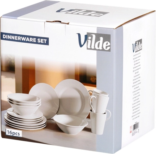 De 16-delige set dekt de dagelijkse behoeften van het gezin: kommen, platte en dessertborden en mokken voor comfortabel serveren van alle gangen.