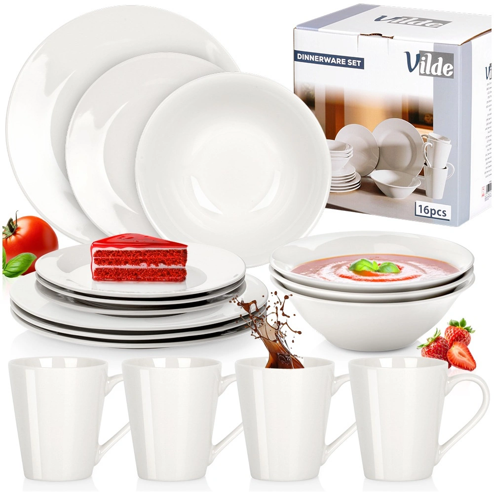 Deze 16-delige porseleinen set is een praktische en stijlvolle oplossing voor het dagelijkse diner met het gezin. Dankzij het gladde geglazuurde oppervlak en de tijdloze witte kleur combineer je het servies moeiteloos met elk tafelkleed of decor. Hoogwaardig porselein zorgt voor een lange levensduur en comfortabel gebruik thuis en in de horeca.