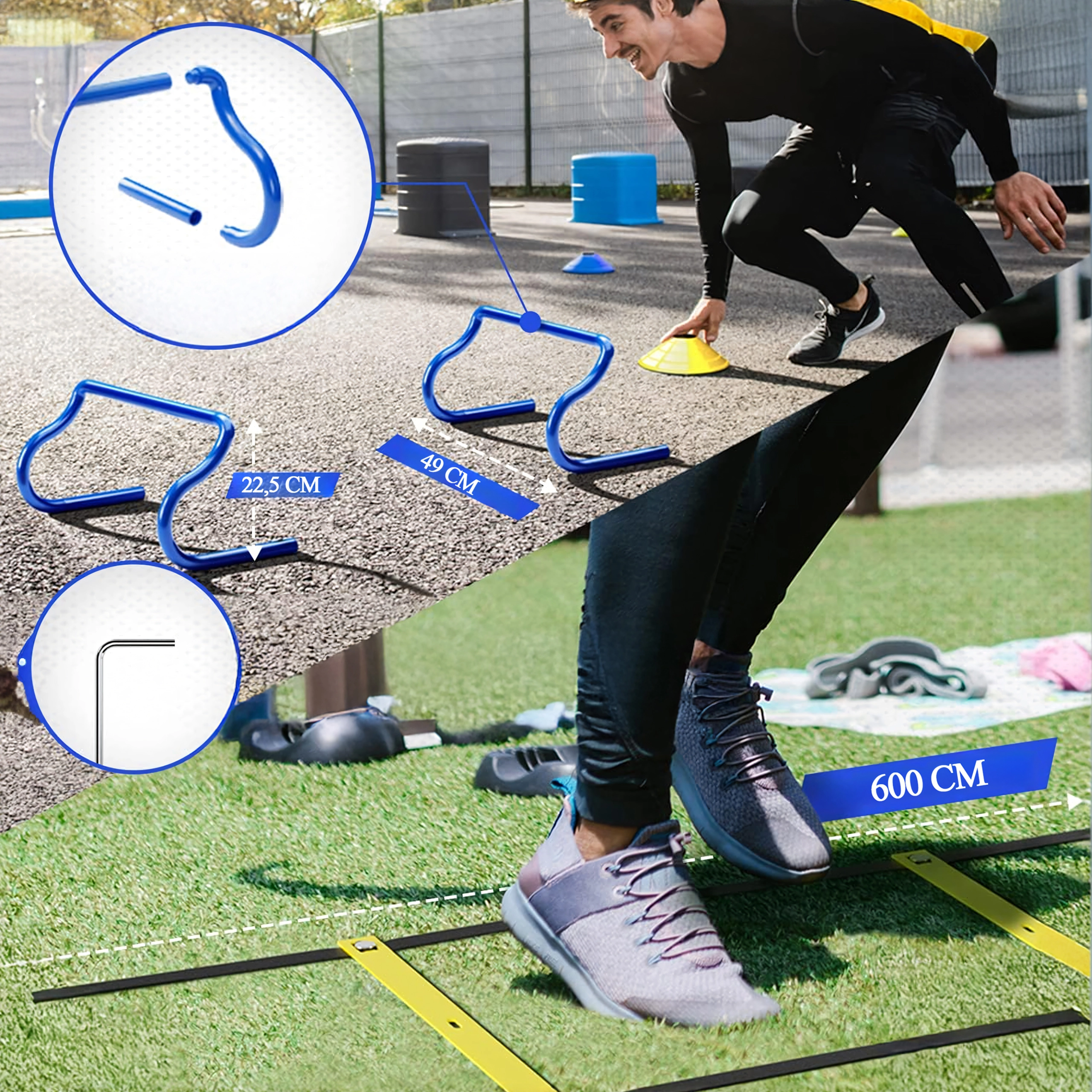 Deze veelzijdige XXL-trainingsset is ontworpen voor sporters van elk niveau. Het helpt effectief bij het ontwikkelen van voetsnelheid, acceleratie, richtingsveranderingen en coördinatie-nauwkeurigheid. Alle onderdelen zijn licht, duurzaam en snel inzetbaar, zowel op het veld als in de sporthal.
