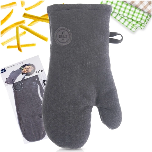 Katoenen ovenwant met sterke magneet, grijs 32 cm
