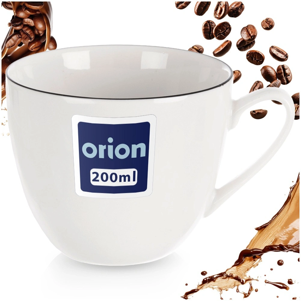 Elegant wit porseleinen kopje uit de collectie DECORA met een inhoud van 200 ml, ideaal voor koffie en thee. Het heeft een dunne zwarte rand voor een tijdloze uitstraling, een ergonomisch oor voor comfortabel vasthouden en is geschikt voor vaatwasser en magnetron. Een uitstekende keuze voor dagelijks gebruik en stijlvol serveren.