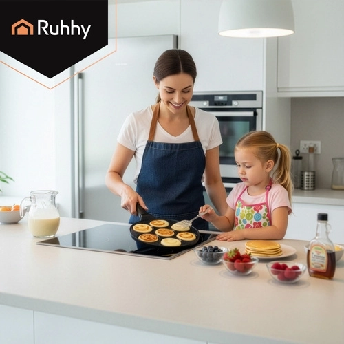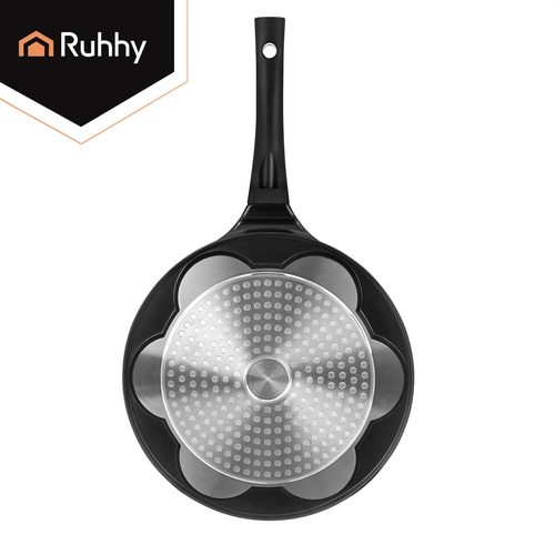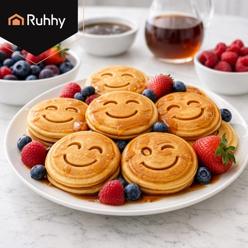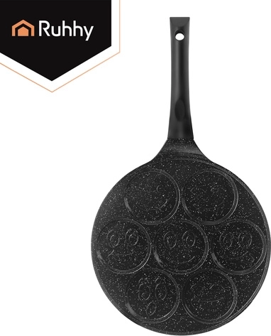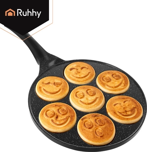 Maak het ontbijt leuker met de RUHHY pan voor 7 mini‑pannenkoekjes met vrolijke gezichtjes. Dankzij de antiaanbak keramische coating zonder PFOA bak je met een minimum aan vet, terwijl de inductiebodem zorgt voor een egale warmteverdeling. Een afneembare, niet‑opwarmende handgreep biedt veiligheid en comfort op alle soorten kookplaten.