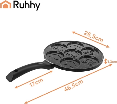 Ruhhy pan voor pannenkoekjes en eieren met smileys 26,5 cm, antiaanbak, inductie