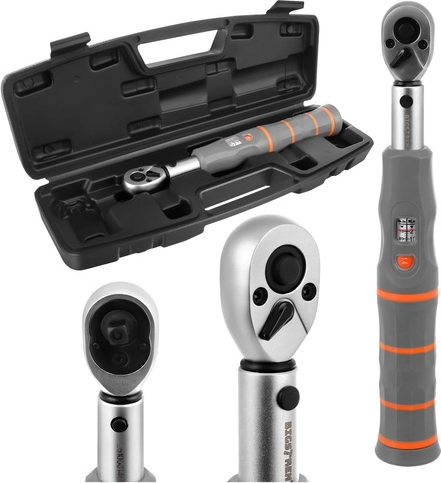 Compacte BIGSTREN 1/4" momentsleutel met bereik 2–26 Nm voor nauwkeurig aandraaien van verbindingen in de fiets-, auto-moto- en servicebranche. Biedt ±0,5% nauwkeurigheid, een ratelkop, schakeling rechts-/linksom en een vergrendeling van de instelling voor zekerheid en reproduceerbare resultaten. De duurzame constructie van chroomlegering en Cr‑Mo staal en de ergonomische TPR-handgreep garanderen een lange levensduur en comfortabel werken.