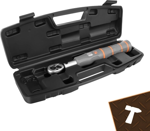 Het push‑pull mechanisme (instellingsvergrendeling) voorkomt ongewenste wijziging van het moment; de goed leesbare schaal in Nm en lb.in vereenvoudigt de instelling. Duurzame materialen (chroomlegering en Cr‑Mo staal) en een ergonomische TPR-handgreep zorgen voor comfort en een lange levensduur in de werkplaats en thuis. Inclusief kalibratiecertificaat en stevige transportkoffer.
