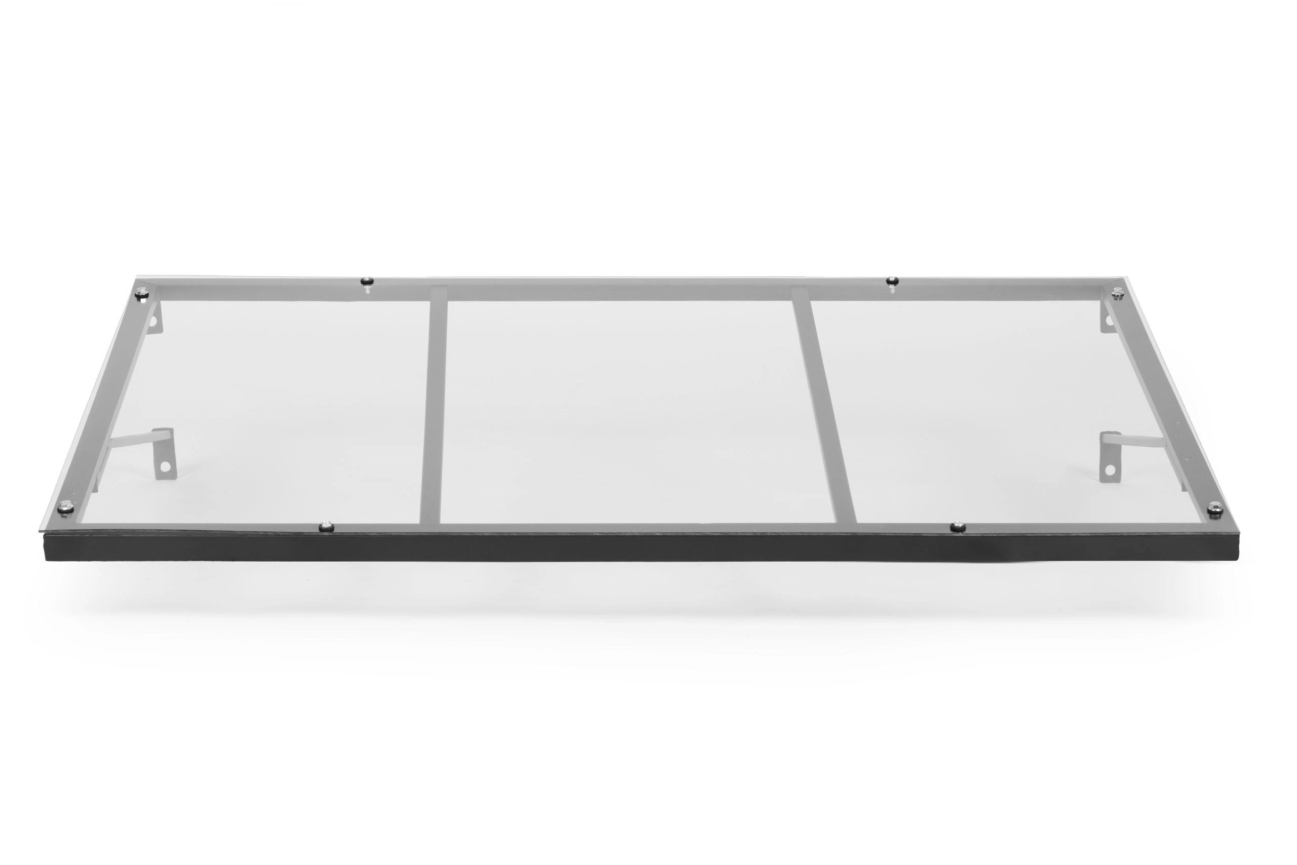 De luifel beschermt de ruimte voor de deur effectief tegen regen, sneeuw en felle zon, zodat de entree droog en veilig blijft. Het transparante paneel laat natuurlijk licht door.