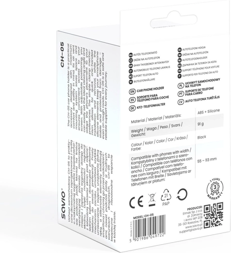 Praktische SAVIO CH-05 autohouder die direct op het ventilatierooster wordt bevestigd, zodat hij het zicht niet belemmert en je telefoon altijd binnen handbereik houdt. Biedt snelle montage zonder zuignappen of lijm, een draaibare kop voor verticale en horizontale stand en veilige bediening met één hand dankzij siliconen inlays. Compatibel met de meeste smartphones met een breedte van 55–113 mm.