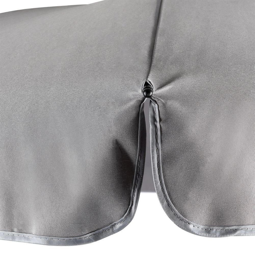 De meerdelige grijze kap van duurzaam polyester biedt aangename schaduw en beschermt tegen zonnestraling in de tuin en op het strand.