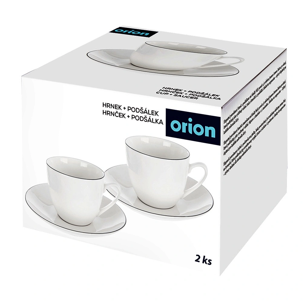 Geniet van koffie, thee of kruidendranken met de stijlvolle set van twee porseleinen kopjes DECORA. Het zuiver witte oppervlak met een subtiele donkere lijn oogt elegant en is makkelijk te combineren met ander servies op tafel. De schotels zorgen voor orde en zekerheid bij het serveren.
