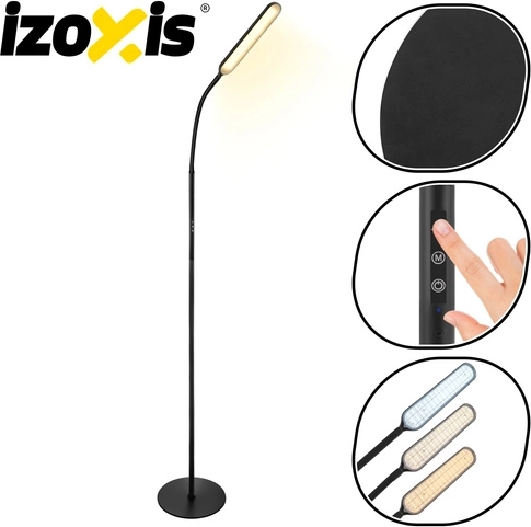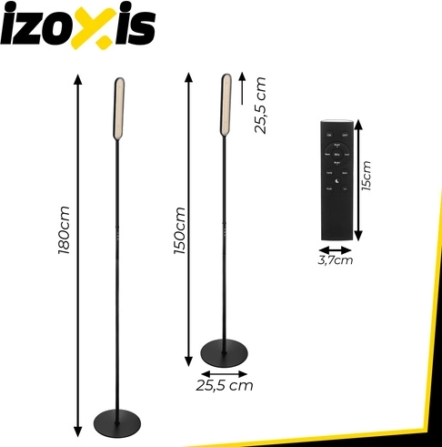 De elegante staande LED-lamp IZOXIS met een hoogte van 180 cm biedt een modern design en maximaal bedieningscomfort. Hij beschikt over 3 lichtkleuren (3000K / 4000K / 6000K), 6 helderheidsniveaus, afstandsbediening tot 15 m en een touchpanel. Dankzij 216 LED-diodes geeft hij een gelijkmatig, niet-verblindend licht, heeft hij een nachtmodus, een 100% helderheid met één klik en een timer van 5 min / 1 u voor automatisch uitschakelen.