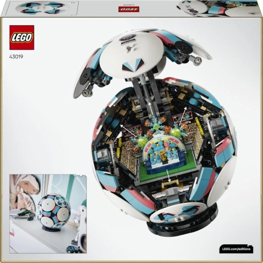 De LEGO Editions Voetbalbal (43019) is een geweldig cadeau voor voetballiefhebbers en verzamelaars van designmodellen. Dankzij LEGO Technic-elementen krijgt de bal een authentieke ronde vorm, geïnspireerd op de officiële maat 5-bal, en vallen zes stijlvolle decoratieve schijven op het oppervlak op. Binnenin schuilt een verrassing – een miniatuurstadion met een dynamische feestscène.
