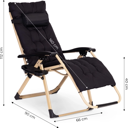 Dankzij de traploze verstelling en het vergrendelmechanisme stel je eenvoudig de ideale lighoek in. De Zero-Gravity positie verlicht de rug en ondersteunt natuurlijke ontspanning. Het zij-aflegtafeltje met bekerhouder en ruimte voor je telefoon houdt alles wat je nodig hebt binnen handbereik.