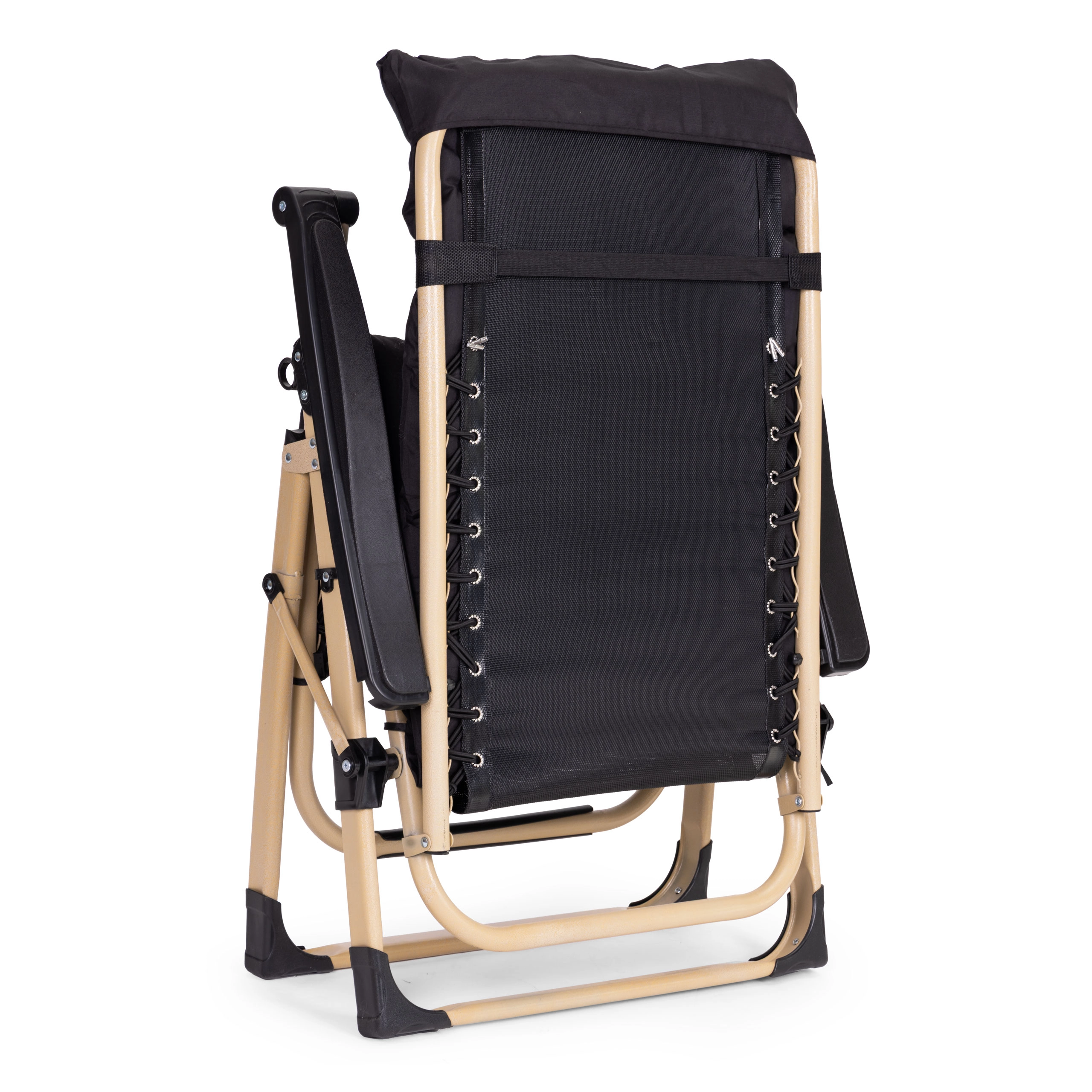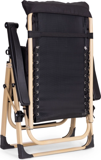 Het dik gewatteerde, doorgestikte kussen met verstelbaar hoofdkussentje verhoogt het comfort bij langdurig zitten en ontspannen. Eenvoudige bevestigingsbanden en een overlap voorkomen verschuiven.