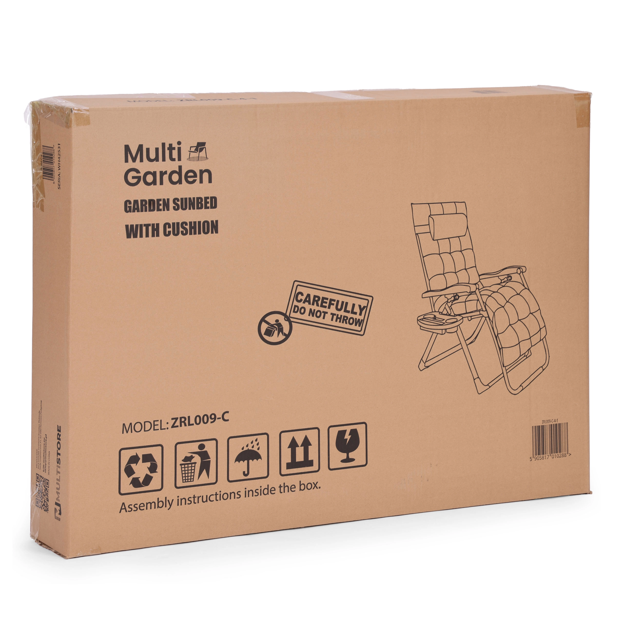 Ontspan in de frisse lucht met maximaal comfort. Het MultiGarden ligbed combineert een duurzame stalen constructie met poedercoating en ademend Textilene-weefsel met PVC, dat snel droogt, bestand is tegen vocht en zich prettig aan het lichaam aanpast. Inclusief een zacht kussen met hoofdsteun dat zowel zit- als rugdeel bedekt voor nog aangenamere rust.