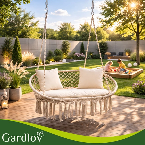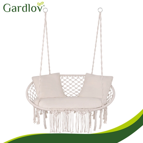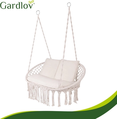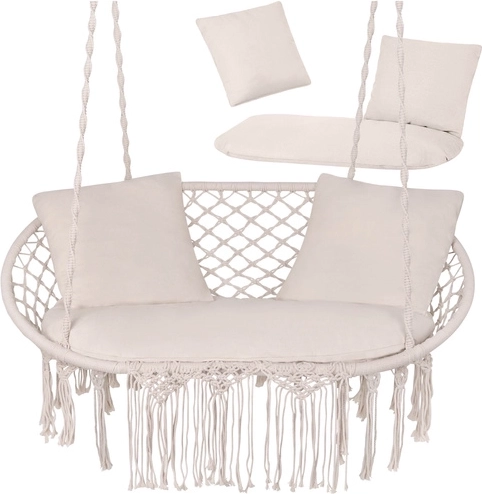 Verander je hangstoel in een echte oase van ontspanning. De tweedelige zitting en twee vierkante kussens vullen de zitruimte en zorgen voor stabiliteit en zacht comfort tijdens het relaxen met z’n tweeën. Het universele design en de slijtvaste materialen zijn ideaal voor tuin, terras, balkon en interieur.