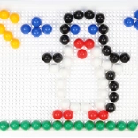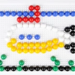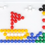 Zonder voorbeelden en met 120 kleurrijke onderdelen met een diameter van 10 mm creëren kinderen hun eigen afbeeldingen en trainen zij hun creativiteit.