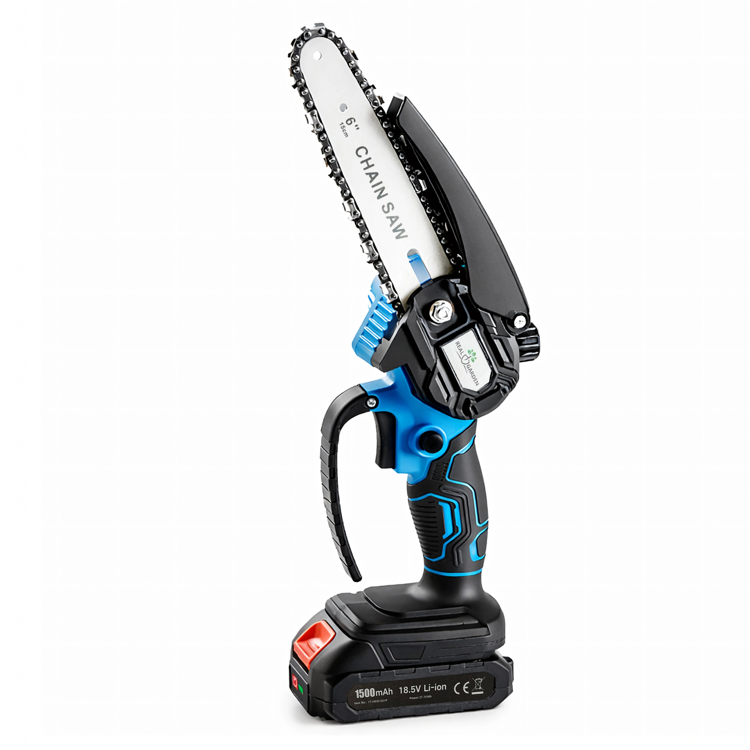 De ergonomische handgreep met stevige grip, de bovenste veiligheidskap en de robuuste geleider met ketting zorgen voor controle over de zaagsnede en een soepele workflow. De compacte afmetingen maken hantering eenvoudig, ook in dichtbegroeide zones en bij werk boven het hoofd.