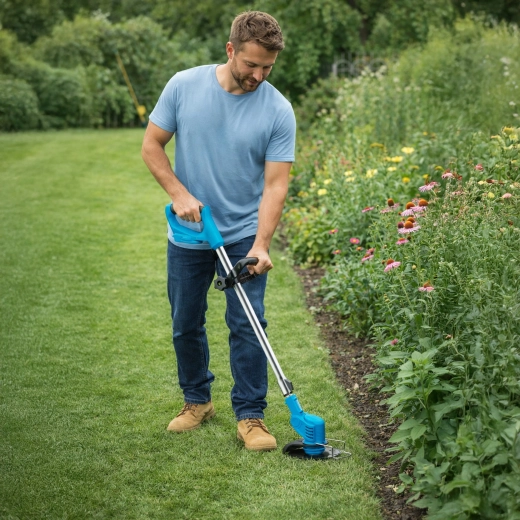 Lichte en tegelijk krachtige accu-grastrimmer voor precieze verzorging van gazonranden, paden en moeilijk bereikbare plekken. Dankzij de verstelbare telescopische steel, ergonomische handgreep en rijke accessoireset beheers je zowel fijn trimmen als zwaardere begroeiing. Twee Li‑ion accu’s en een snellader zorgen voor ononderbroken snoerloos werken.