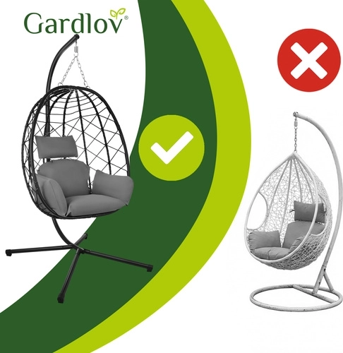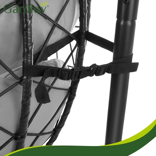 De hangstoel ei GARDLOV is een stijlvolle en comfortabele toevoeging voor buiten- én overdekte ruimtes. De hoge constructie (ca. 194 cm) en diepe zitting creëren een aangename “cocon” die je omarmt en ongestoorde rust garandeert. Het duurzame frame van gegalvaniseerd staal met stabiele kruisvoet en een stevige ophangketting zorgt voor veiligheid en zekerheid bij elke beweging.