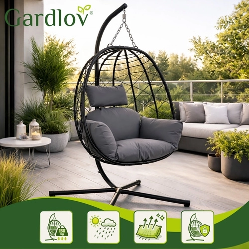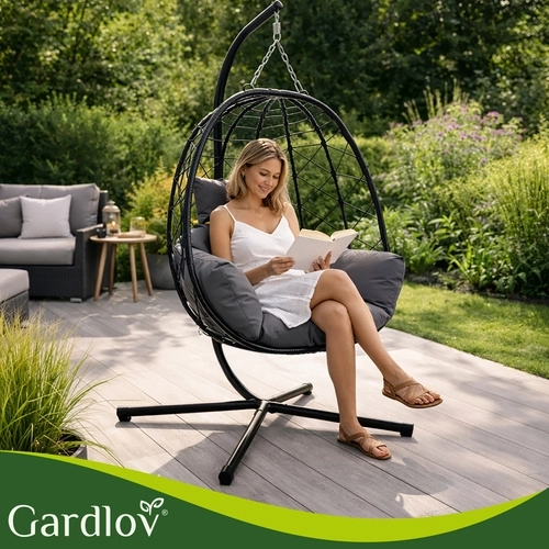 Creëer je eigen oase van rust met de hangstoel GARDLOV. Voorzien van een stabiele stalen standaard, draagvermogen van 150 kg en zachte, waterafstotende kussens voor comfortabel schommelen op terras en in tuin. Dankzij de stevige ketting en de ruime “cocon” geniet je van echte ontspanning zonder compromissen.
