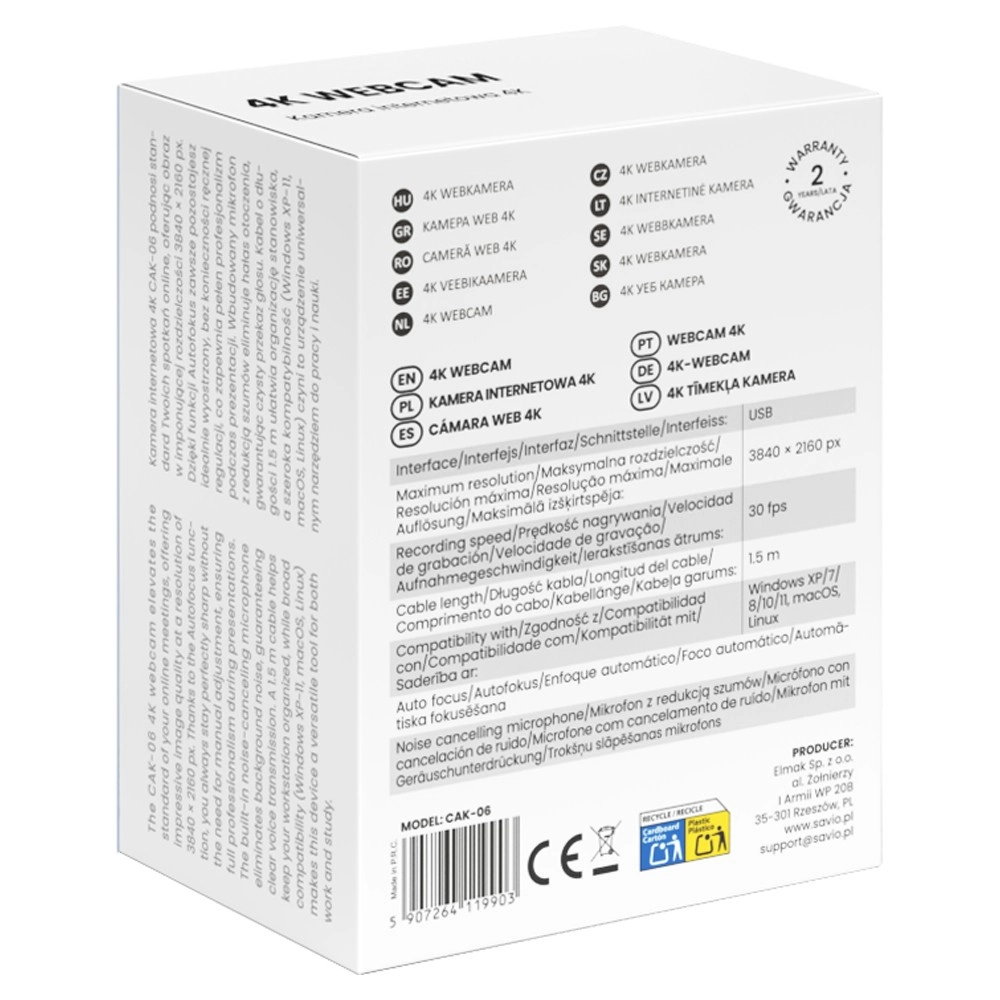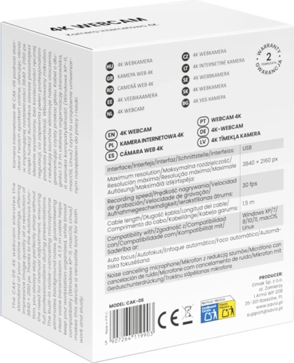 De 4K-resolutie (3840 × 2160) in combinatie met 30 frames per seconde levert een scherp en vloeiend beeld, waardoor je opvalt tijdens videogesprekken, presentaties en streams.
