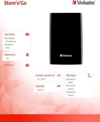 Breid je opslag uit met de externe schijf Verbatim Store'n'Go 1 TB. Dankzij de USB 3.0-interface kopieer je grote bestanden razendsnel, terwijl de achterwaartse compatibiliteit met USB 2.0 zorgt voor probleemloos gebruik met oudere apparaten. Het elegante, glanzend zwarte design past zowel op je bureau als onderweg.