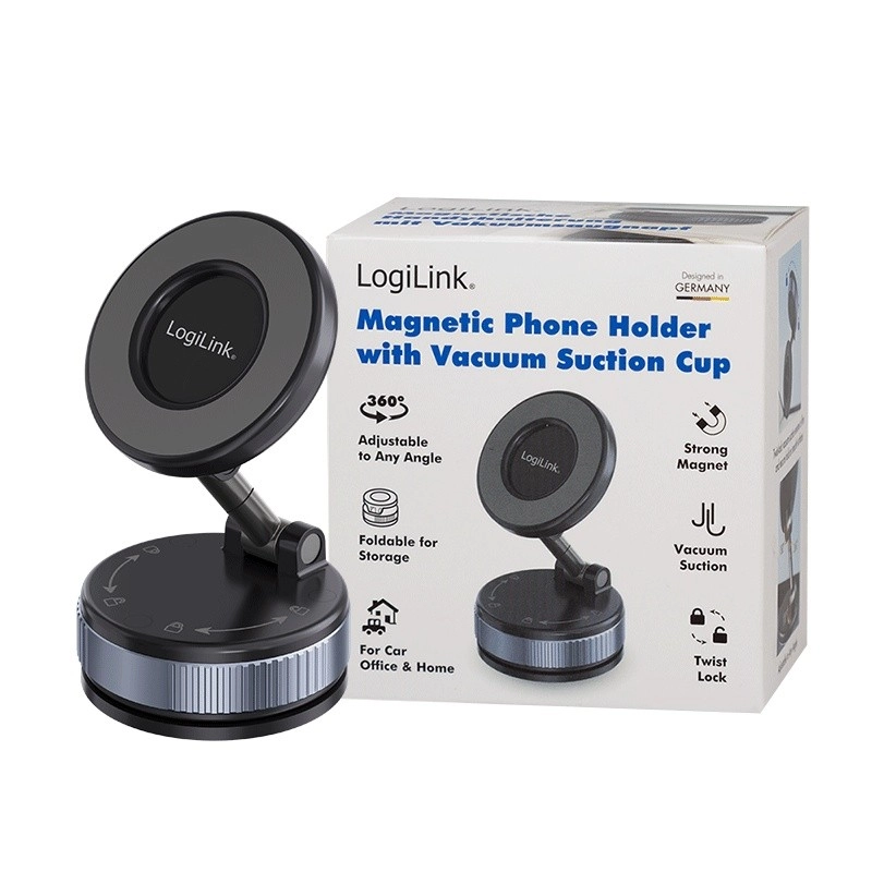 Compacte magnetische smartphonehouder met zuignap, voorzien van een dubbele verstel-as, een draaibare vacuümvergrendelingsbasis en krachtige N52H‑magneten met een trekkracht tot 16 N voor een veilige bevestiging. Dankzij het opvouwbare ontwerp is hij ideaal voor op reis en in de auto, met nauwkeurige hoogte- en hoekinstelling.