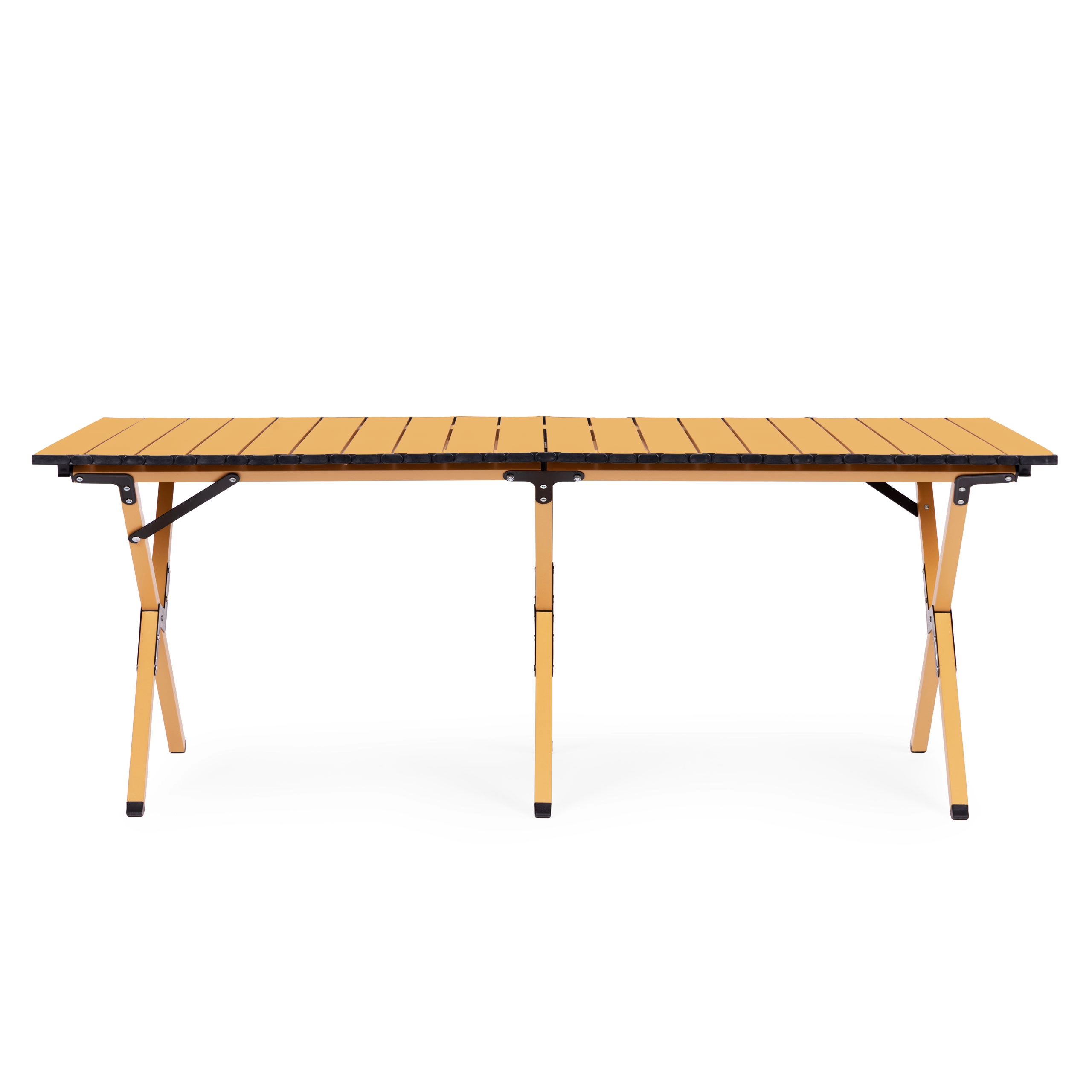 Geniet overal buiten van comfort – deze opvouwbare tafel biedt een stabiel oppervlak voor eten, drinken en kampeeraccessoires. Dankzij het robuste frame van koolstofstaal en het oprolbare lamellenblad biedt hij uitstekende stabiliteit, eenvoudig onderhoud en snel opzetten.