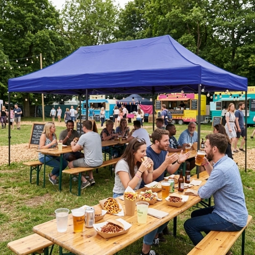 Het automatisch uitklapbare stalen frame maakt het mogelijk de tent in een oogwenk op te zetten – zonder langdurige montage. Ideaal voor evenementen waar snelheid en eenvoud tellen.