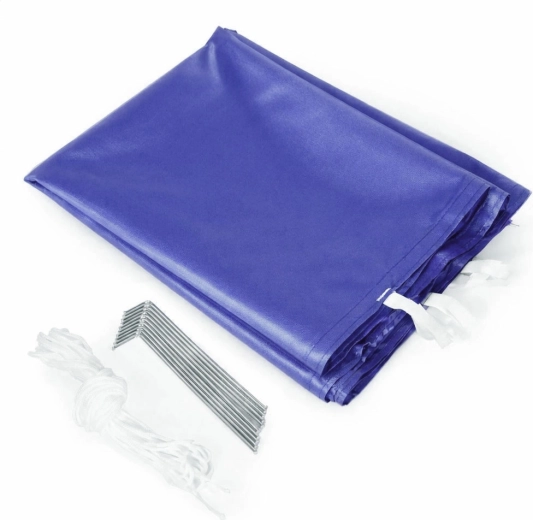 Stalen poten met voetplaten en montagegaten, in de set haringen en lijnen. Zo zorg je eenvoudig voor stabiliteit op gras of een zachte ondergrond.